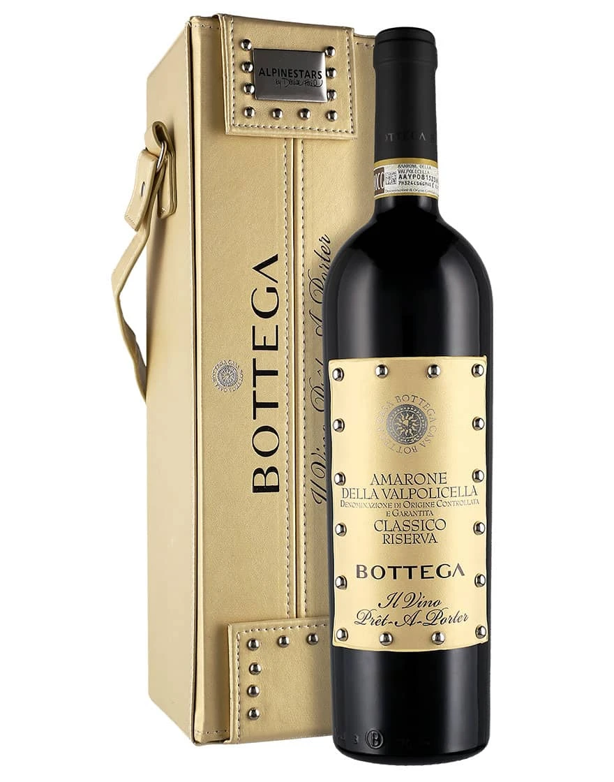 Il Vino Pret-a-porter della Distilleria Bottega nasce ricco di dettagli che lo rendono unico e particolare. Si tratta di un Amarone della Valpolicella Classico, nobilitato di tutta la sua complessità e vestito nell’insolita etichetta in ecopelle, la stessa che riveste anche l’astuccio che lo contiene. Siamo in Veneto, patria di vini strutturati e di grande intensità.