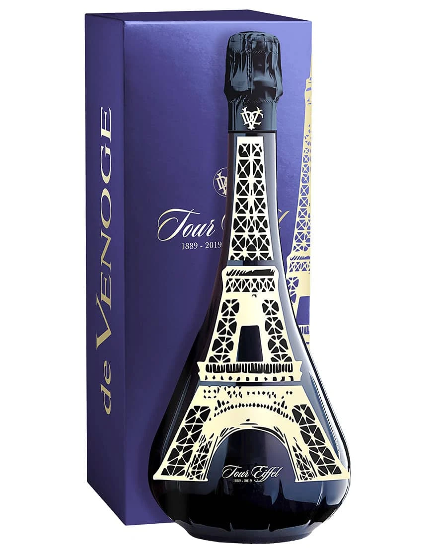 La Tour Eiffel Cuvée firmata De Venoge è uno champagne a tiratura limitata nato per celebrare i 130 anni dalla inaugurazione del monumento simbolo della Francia tra i più visitati al mondo. La torre Eiffel fu costruita in occasione dell’Esposizione Universale del 1889, il cui partner ufficiale era proprio lo champagne De Venoge. Inoltre, la forma delle bottiglie Princes ricalca in maniera soprendente la geometria della torre.