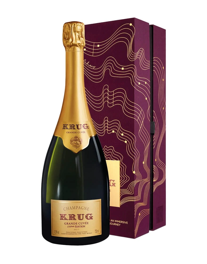 La Grande Cuvée 170 ème è composta da 195 vini di 12 annate diverse e selezionati negli ultimi 24 anni. Il vino è un pregiato blend di Pinot Noir, Chardonnay e Pinot Meunier. Il riposo del vino per circa sette anni gli conferisce quell’eleganza che costituisce la cifra stilistica dell’intera maison, ma che trova in questa etichetta un compimento ancora più manifesto. Krug Grande Cuvée è il primo e unico Champagne de Prestige ricreato ogni anno, che interpreta e supera il concetto di Millesimato. L’arte di assemblare vini di annate così diverse, in cui la maison di Krug è il più fedele testimone, riproduce alla perfezione quel profilo organolettico che sarebbe, altrimenti, impossibile da conseguire.