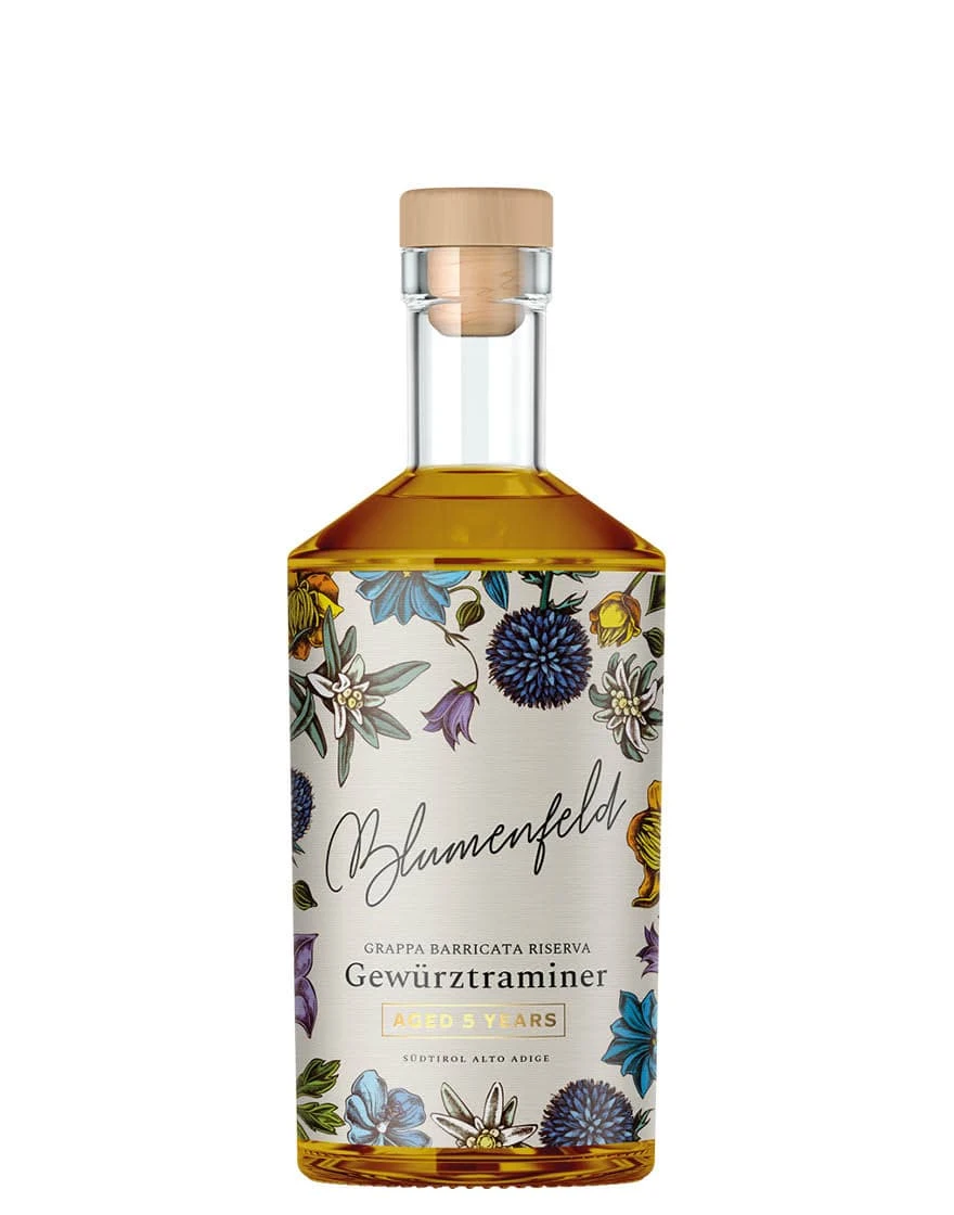 Questa Grappa Barricata Riserva di Blumenfeld è una grappa di fattura artigianale che prende vita da una distillazione in alambicco discontinuo a vapore da pura vinaccia di uve Gewürztraminer. È il risultato di estrema cura e dedizione nell’invecchiamento che si protrae per almeno 5 anni.