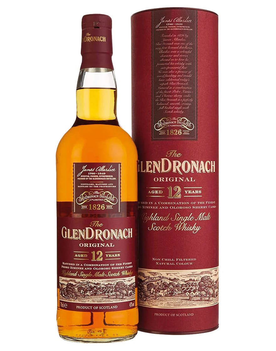 Il Glendronach 12 Years Old è un whisky che nasce ad Huntley, nella parte orientale delle Highlands. È figlio di un invecchiamento di 12 anni in botti ex-Sherry Oloroso e Pedro Ximenez.