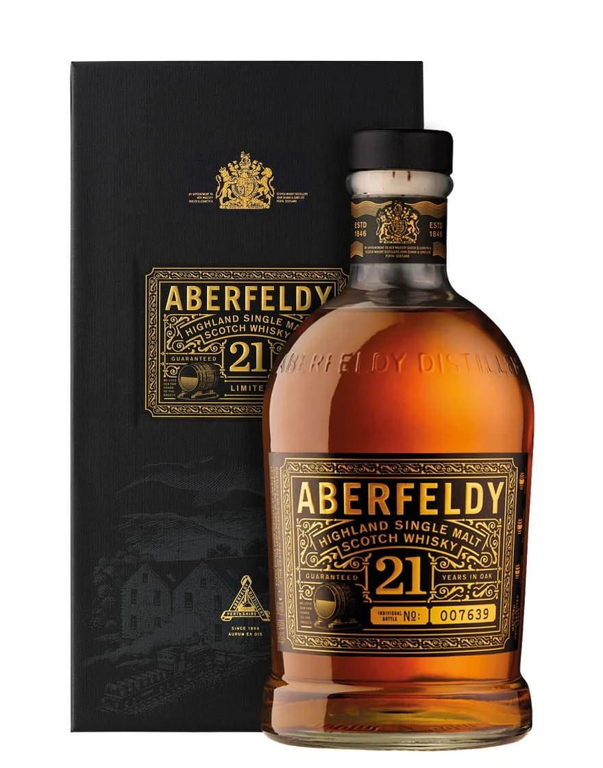Nel caso dell’Aberfeldy 21 Years Old si parla di un Single Malt ricco e corposo, invecchiato in botti ex-Bourbon e distillato in alambicco discontinuo.