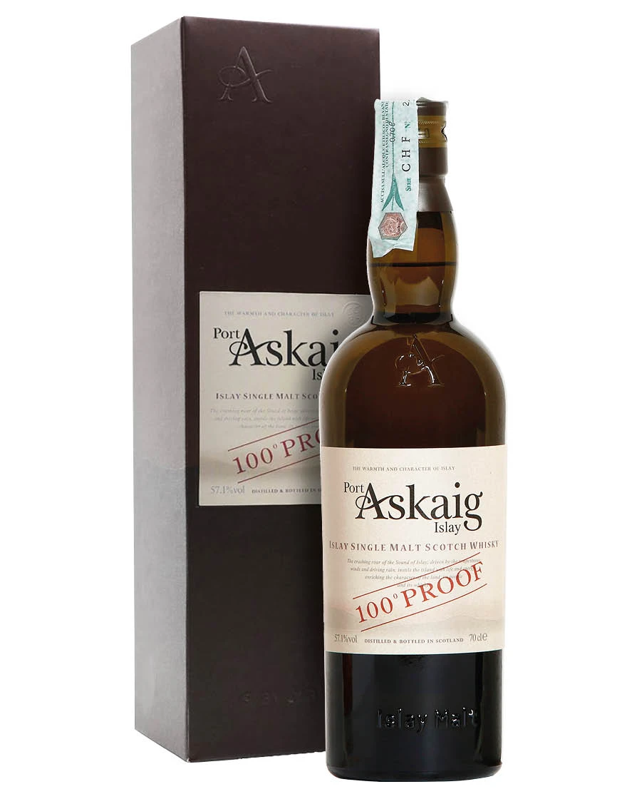 Il Single Malt Scotch Whisky 100° Proof di Port Askaig sorge sull’Isola di Islay, uno dei luoghi di elezione per la produzione di whisky ricercati, che si caratterizzano per essere particolarmente torbati. Questo whisky è annoverato nella categoria dei “cask-strength”, whisky il cui tenore alcolico non viene in alcun modo diluito ed è imbottigliato alla gradazione imperiale di 100° Proof (57.1%).