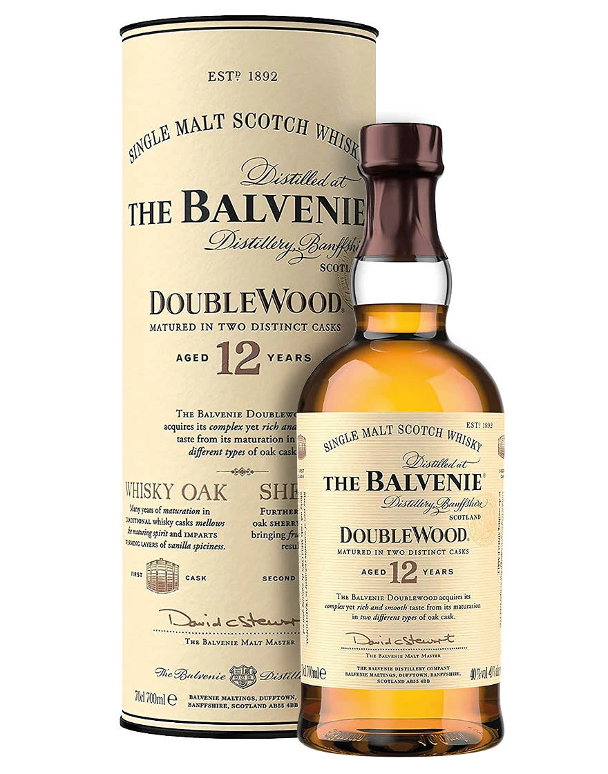 Il Single Malt Scotch Whisky 12 Years Doublewood firmato The Balvenie si distingue nel panorama internazionale dei whisky per un particolare processo di maturazione lungo 12 anniche vede il whisky passare dapprima in botti di rovere americano che in precedenza contenevano bourbon, per poi rimanere ad affinare in botti ex-sherry, assumendo carattere, morbidezza, profondità e pienezza gustativa.