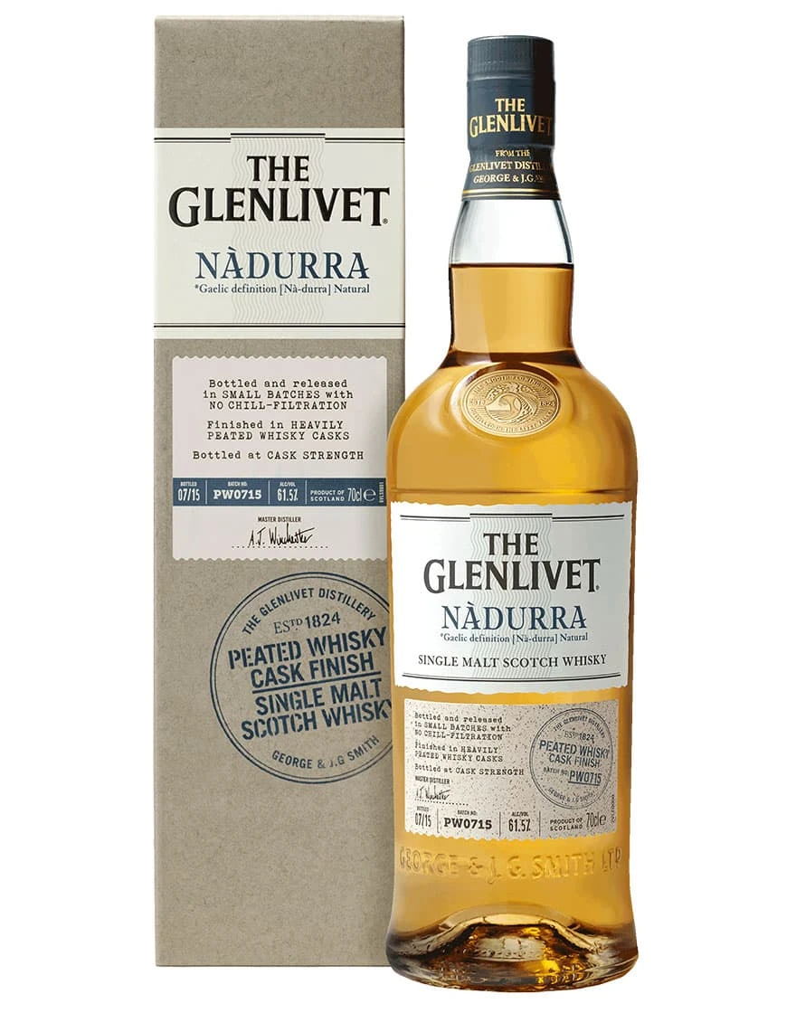 Come intuibile già dal suo nome, il Nadurra Peated prodotto dalla distilleria The Glenlivet, è uno scotch whisky dalle evidenti – e volute – connotazioni torbate. Trascorre il tempo della sua maturazione all’interno di botti che hanno precedentemente ospitato come primo passaggio del bourbon in affinamento.