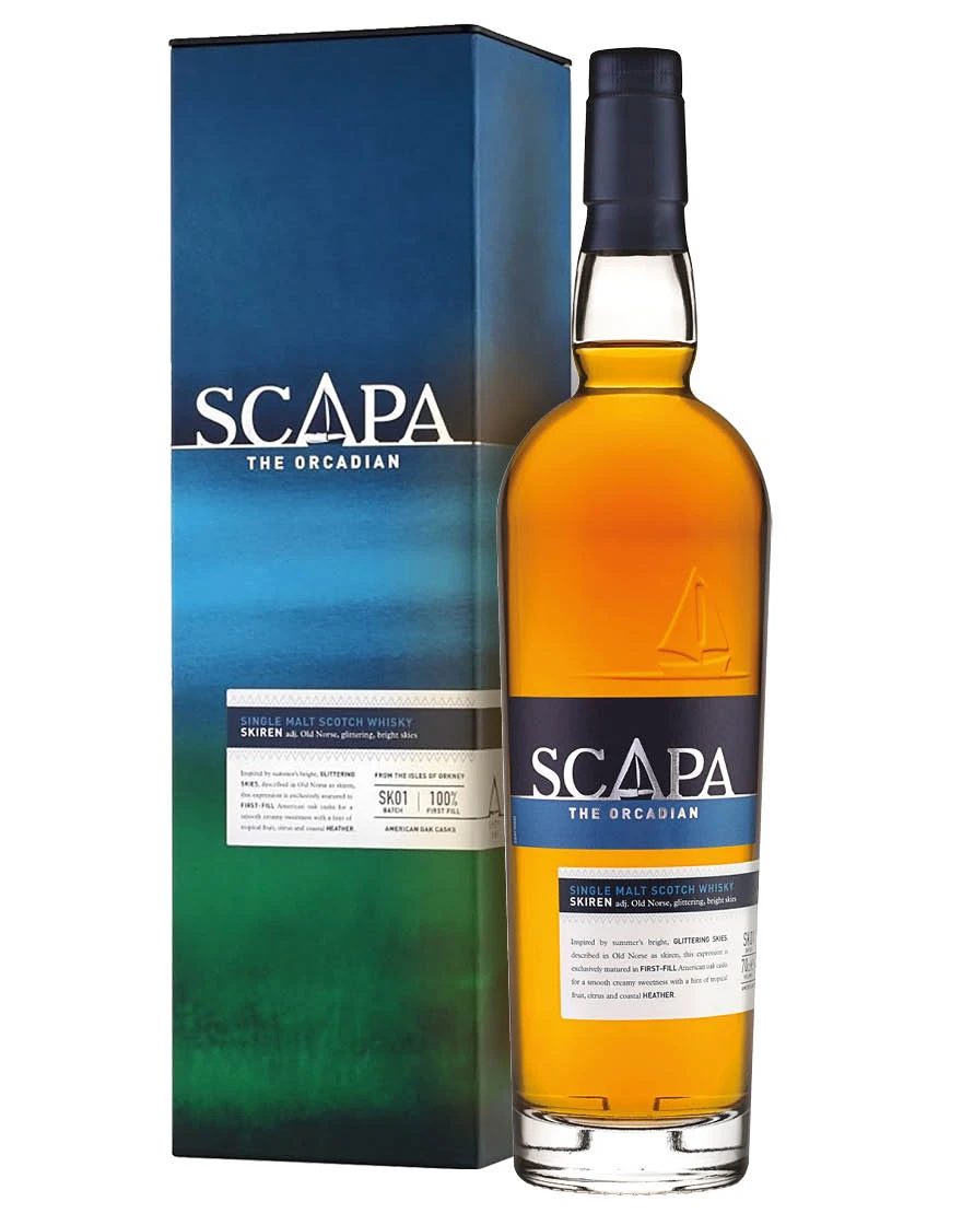 The Orcadian Skiren di Scapa è uno Scotch Whisky a singolo malto artigianale prodotto sulle isole Orcadi che matura all’interno di botti di rovere americano di primo riempimento provenienti dal Tennessee e dal Kentucky, le quali vengono sottoposte ad una accuratissima selezione. A differenza di altri whisky delle isole, non viene utilizzata la torba per la produzione di malto, permettendo l’emergere di un gusto di frutta tropicale dalle tinte dolci unico nel suo genere.