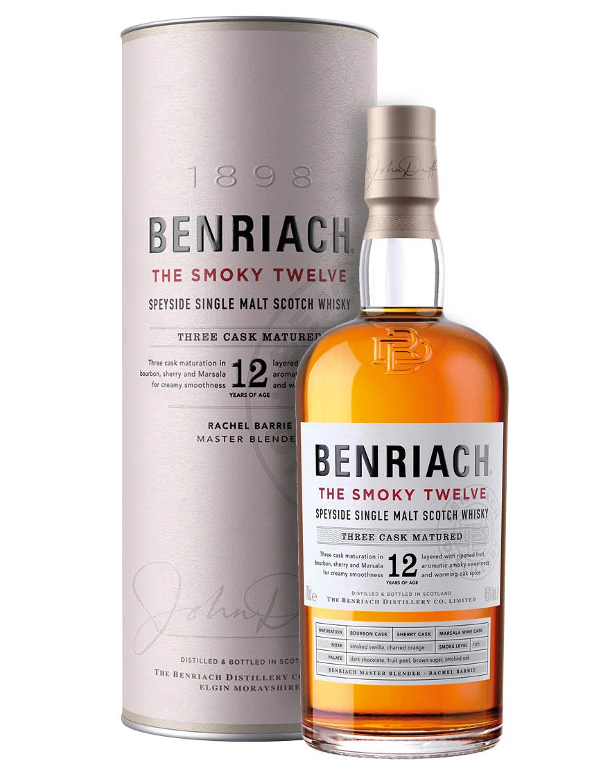 The Smoky Twelve di BenRiach nasce tra Rothes ed Elgin, nella parte nord-orientale della Scozia. È un whisky realizzato come tributo allo stile di whisky dello Speyside del XIX secolo, caratterizzato dall’utilizzo di una torba legnosa che conferisce al whisky finale note più dolci e decisamente meno affumicate. Matura per 12 anni tra botti ex-Bourbon, botti ex-Sherry e botti che in precedenza contenevano Marsala siciliano.